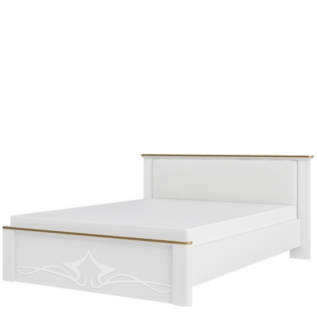 Двуспальная кровать Либерти МН-313-01 с мягким изголовьем и декоративными элементами в современном стиле. Светлые тона, эксклюзивное дизайнерское оформление, все это выглядит как уникальное решение для комнаты отдыха.