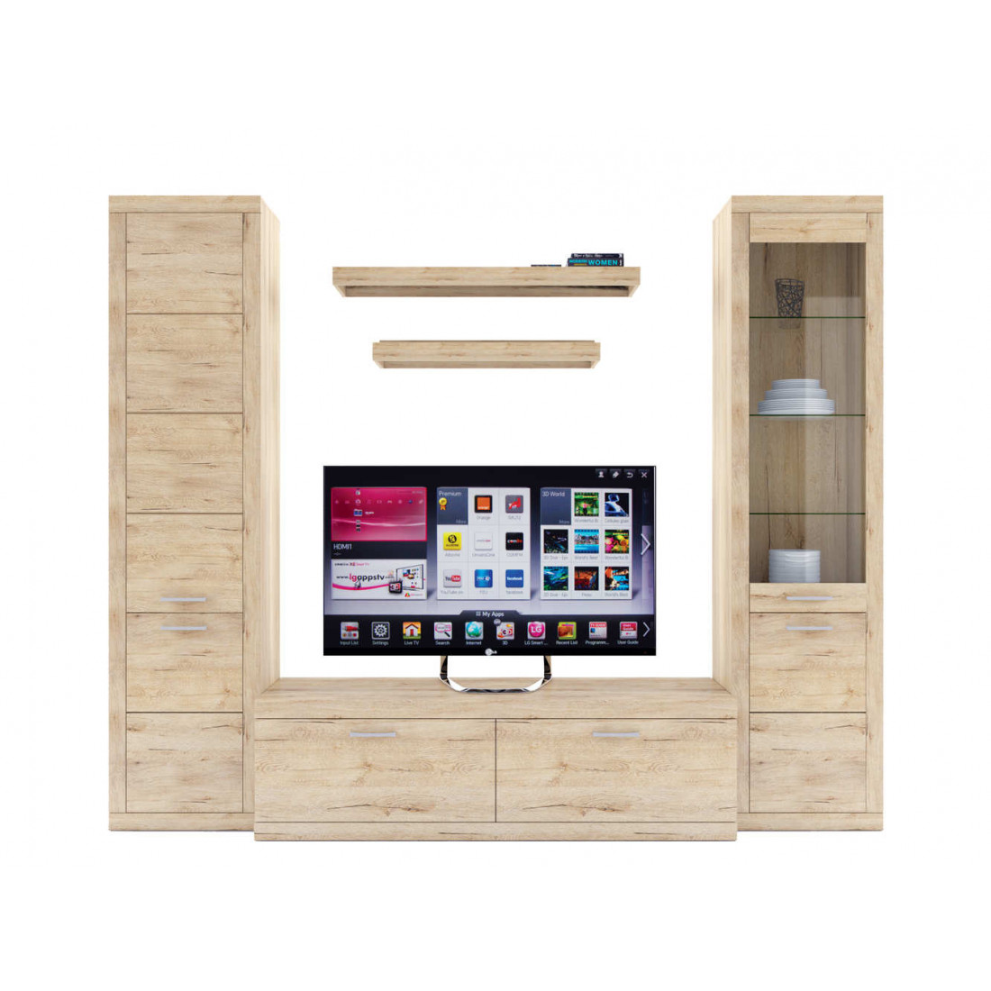 2. 4 варианта тумб RTV с выдвижными ящиками на шариковых направляющих. 2 размера надставных полок для RTV-тумб (полка TVB и полка TV), позволяющих установить выше телевизор. Варианты навесных полок, соответствующих по размеру тумбам для телевизора. Тумба RTV 2S2NL имеет глубину 351 мм, что позволяет составить модули, имеющие такую же глубину, в одну линию без выступающих элементов.