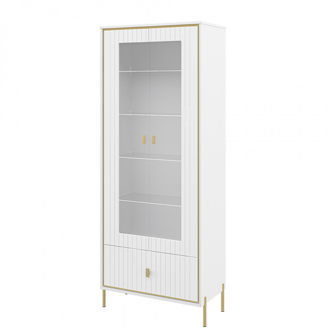 Купить витрину в гостиную можно отдельно, так и дополнив ее тумбой или полкой из серии.